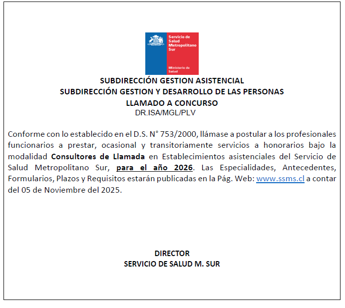 LLAMADO REQUISITOS Y PLAZOS CONSULTORES DE LLAMADA 2026