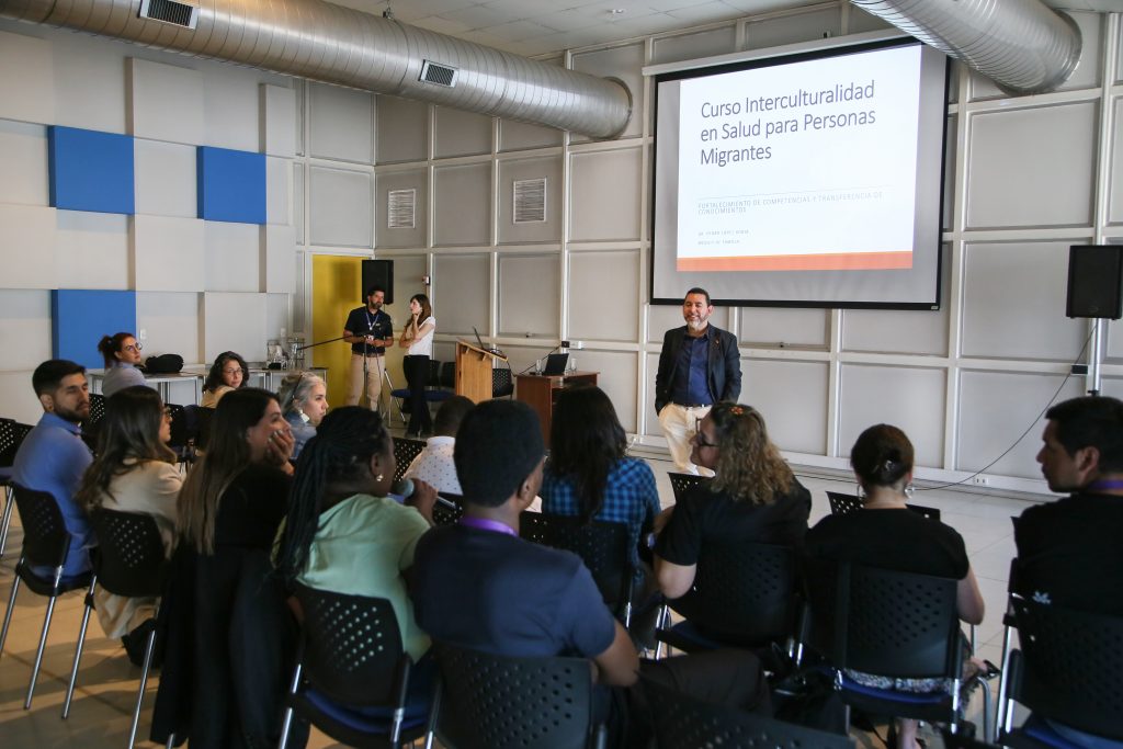 El curso, realizado en el Auditorio Mario Salcedo, consideró la exposición de Deiza Troncoso M., profesional asesora en salud y migración del Ministerio de Salud; para luego, desarrollar los distintos módulos de aprendizajes “Los Fundamentos del Enfoque Intercultural en Salud”, “Aplicación del Enfoque Intercultural en la Atención y Gestión Sanitaria”.